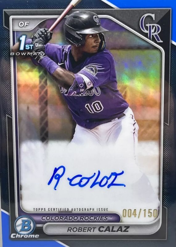 2024 Bowman Robert Calaz Chrome Auto Blue Refractor 1st Prospect #52/150 Rockies