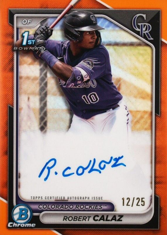 Best Prices Available For Sale of Robert Calaz 2024 Bowman #CPA-RCA Chrome Prospect Auto - Orange Refractor /25 (1st)