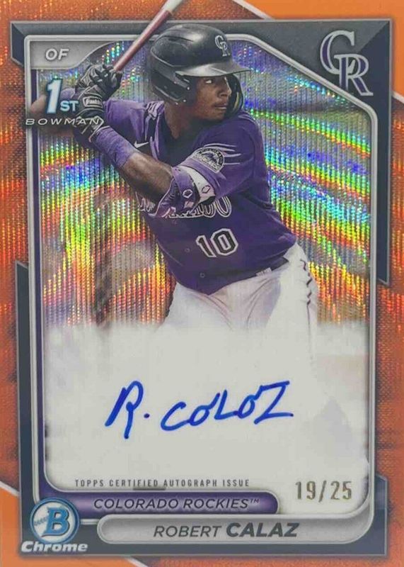 2024 Topps Bowman Baseball ROBERT CALAZ 13/25 Auto 1st Orange Wave Chrome Rockie