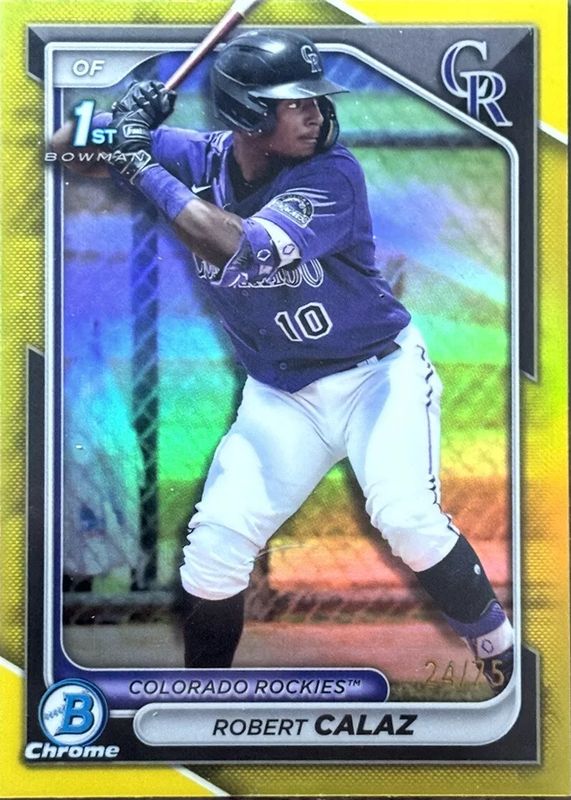 ROBERT CALAZ 2024 BOWMAN CHROME 1ST YELLOW REFRACTOR ROCKIES /75 Q4284