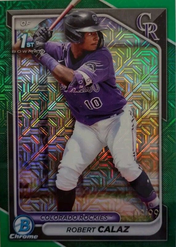 2024 Bowman Chrome 1st Robert Calaz /99 Green Mojo Mega #BCP-131 Rockies