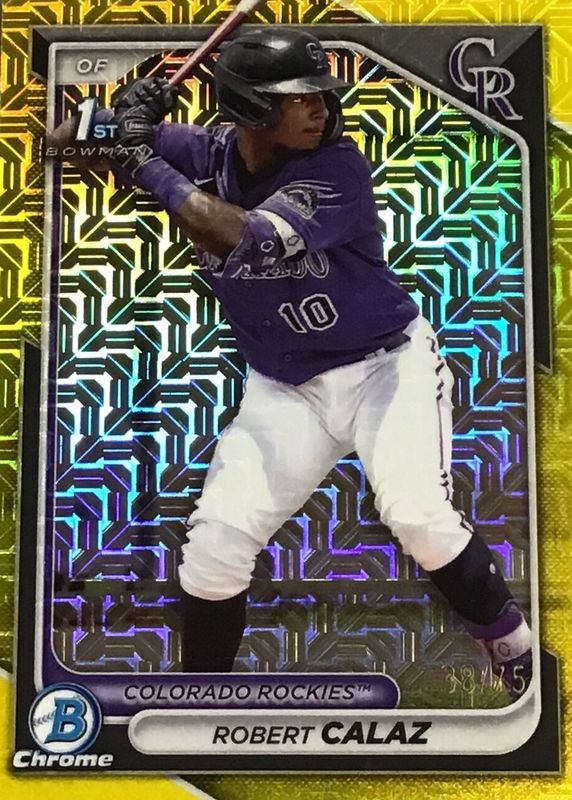 ROBERT CALAZ 2024 1st Bowman Chrome YELLOW MOJO REFRACTOR/75! ROCKIES