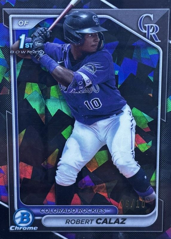 This card is 1 of 8 Robert Calaz's card variations in the 2024 Bowman Sapphire Edition set being tracked by Sports Card Investor, including Base (1st), Green /99 (1st), Yellow /75 (1st), Gold /50 (1st), and Orange /25 (1st).