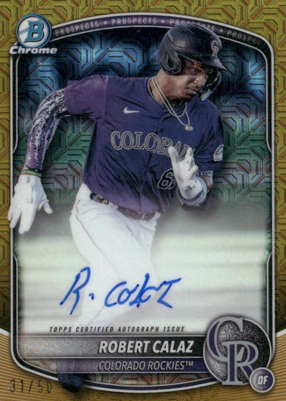 2025 Bowman Robert Calaz Gold Mojo Refractor Auto #/50 Rockies