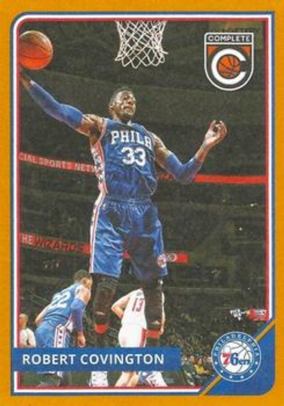 The Robert Covington 2015 Complete #19 Gold card is 1 of 3 Robert Covington's card variations in the 2015 Complete set being tracked by Sports Card Investor, including Base, and Silver.