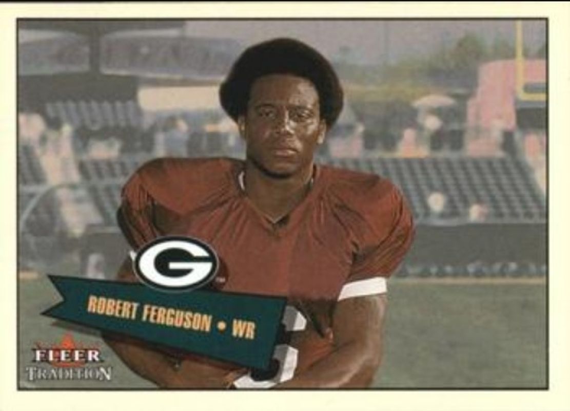 The Robert Ferguson 2001 Fleer Tradition Glossy #433 Rookie Stickers /699 card is 1 of 3 Robert Ferguson's card variations in the 2001 Fleer Tradition Glossy set being tracked by Sports Card Investor, including Base /2001, and Rookie Minis /350.