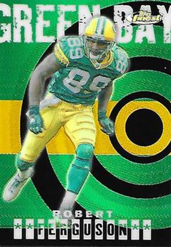 The Robert Ferguson 2004 Topps Finest #28 Gold Refractor /50 card is 1 of 9 Robert Ferguson's card variations in the 2004 Topps Finest set being tracked by Sports Card Investor, including Base /399, Refractors /199, Uncirculated Gold X-Fractors /150, X-Fractor /5, and Printing Plate Black /1.