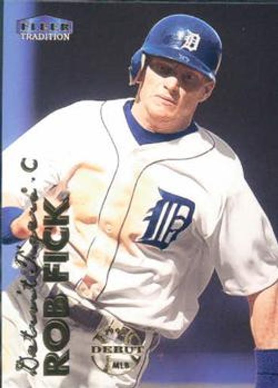 The Robert Fick 1999 Fleer Tradition #241 Base Rookie card is 1 of 4 Robert Fick's card variations in the 1999 Fleer Tradition set being tracked by Sports Card Investor, including Millennium, Warning Track Collection, and Starting 9 /9.