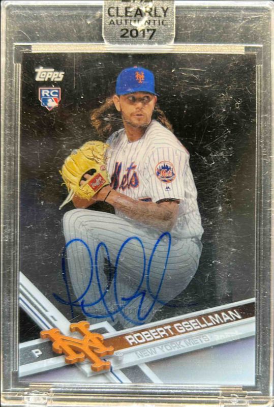 The Robert Gsellman 2017 Clearly Authentic #CAAU-RGS Base Rookie card is 1 of 5 Robert Gsellman's card variations in the 2017 Clearly Authentic set being tracked by Sports Card Investor, including Green /99, Red /50, Blue /25, and Gold /1.
