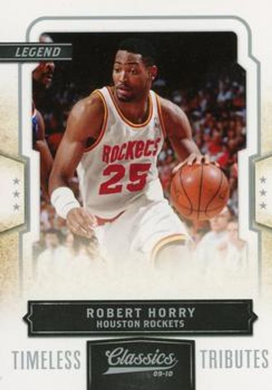 The Robert Horry 2009 Classics #114 Timeless Tributes Silver /100 card is 1 of 7 Robert Horry's card variations in the 2009 Classics set being tracked by Sports Card Investor, including Base /999, Timeless Tributes Gold /50, Timeless Tributes Platinum /25, Blast From The Past Jerseys /99, and Significant Signatures - Gold /50.