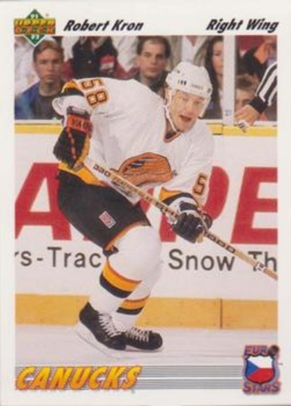 The Robert Kron 1991 Upper Deck #E8 Euro Stars card is 1 of 4 Robert Kron's card variations in the 1991 Upper Deck set being tracked by Sports Card Investor, including #225 Base, #E8a Euro Stars, and #E8b Euro Stars.