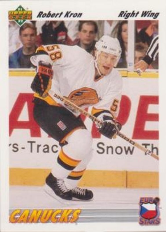The Robert Kron 1991 Upper Deck #E8a Euro Stars card is 1 of 4 Robert Kron's card variations in the 1991 Upper Deck set being tracked by Sports Card Investor, including #225 Base, #E8 Euro Stars, and #E8b Euro Stars.