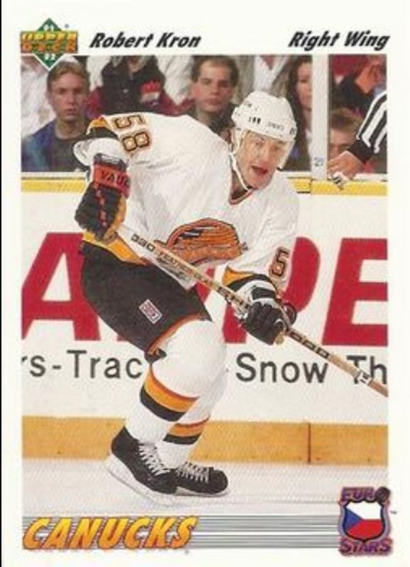 The Robert Kron 1991 Upper Deck #E8b Euro Stars card is 1 of 4 Robert Kron's card variations in the 1991 Upper Deck set being tracked by Sports Card Investor, including #225 Base, #E8 Euro Stars, and #E8a Euro Stars.