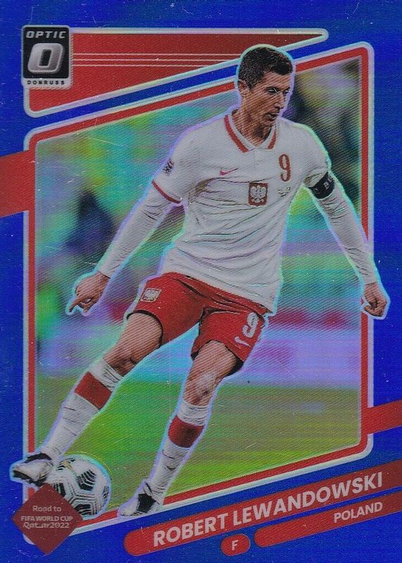 Robert Lewandowski 2021-22 Donruss Road to Qatar Optic Blue Prizm /99