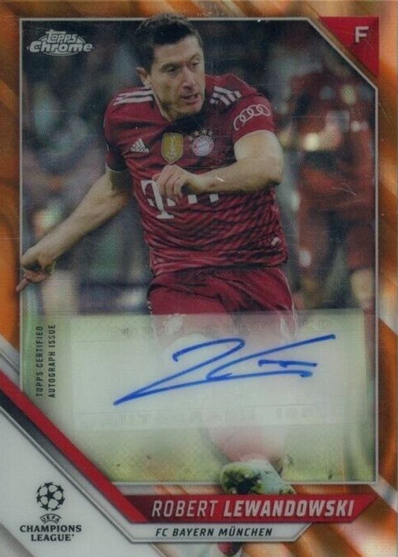 Robert Lewandowski 2021 Topps Chrome UEFA Champions League #CA-RL Autographs - Orange Lava Refractor RAW Price Guide