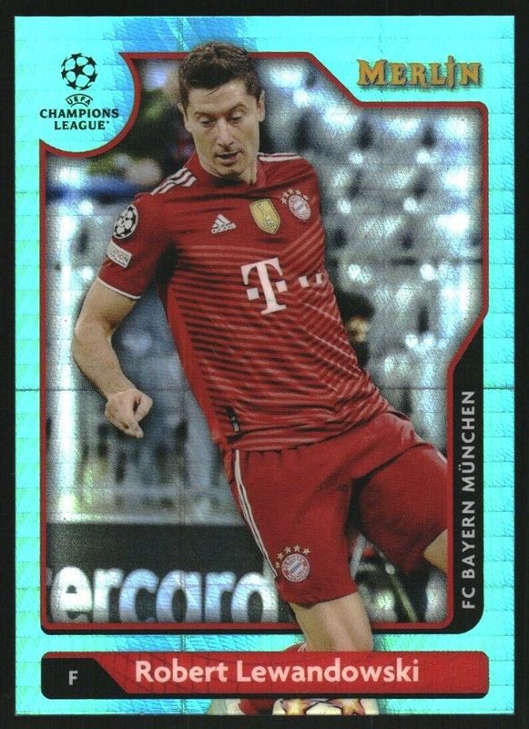 Robert Lewandowski 2021 Topps Merlin Chrome UEFA Champions League #1 Aqua Prism Refractor RAW Price Guide