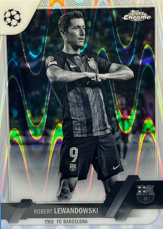 Robert Lewandowski 2022 Topps Chrome UEFA Club Competitions #9 Black & White RayWave Refractor RAW Price Guide