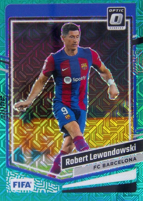 2023-24 Donruss Robert Lewandowski Optic Teal Mojo Prizm #9/49 Barcelona