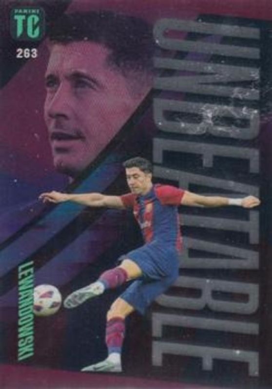 The Robert Lewandowski 2024 Panini Top Class #263 Unbeatable Royal Purple card is 1 of 11 Robert Lewandowski's card variations in the 2024 Panini Top Class set being tracked by Sports Card Investor, including #121 Base, #184 Base, #220 Base, #238 Base, and #263 Base.