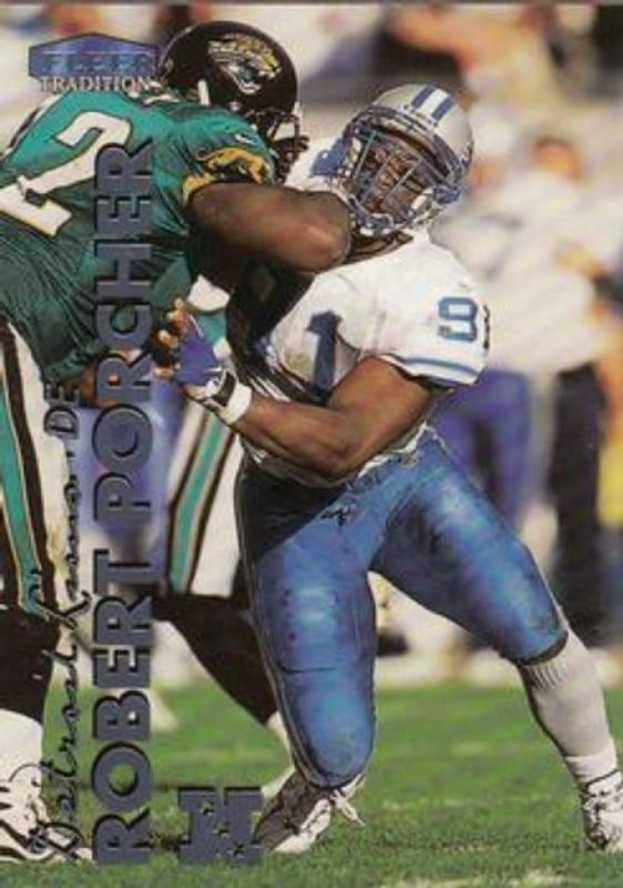 The Robert Porcher 1999 Fleer Tradition #201 Base card is 1 of 3 Robert Porcher's card variations in the 1999 Fleer Tradition set being tracked by Sports Card Investor, including Blitz Collection, and Trophy Collection /20.