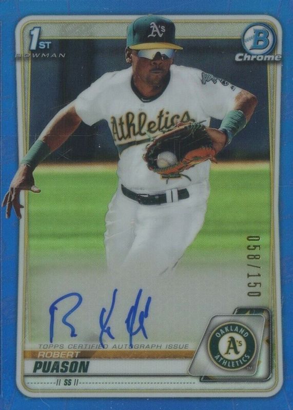 2020 Bowman Chrome Prospect Auto Blue Refractor Robert Puason #76/150 A's