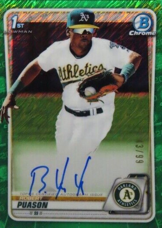 Best Prices Available For Sale of Robert Puason 2020 Bowman #CPA-RP Chrome Prospect Auto - Green Shimmer Refractor /99 (1st)