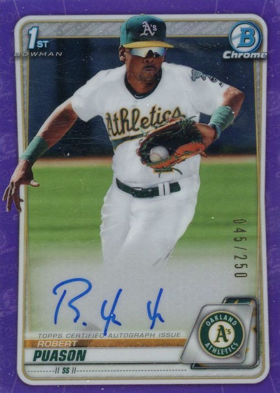 2020 Bowman Chrome PURPLE REFRACTOR Robert Puason #/250 RC ON-CARD AUTO - A's
