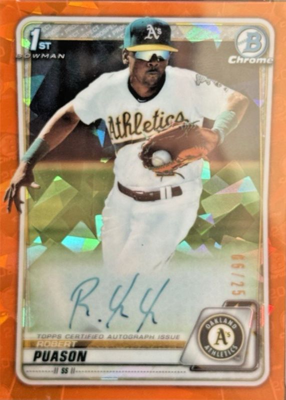 Robert Puason 2020 Bowman Sapphire Edition #BSPA-RP Chrome Prospect Auto - Orange /25 (1st) RAW Price Guide