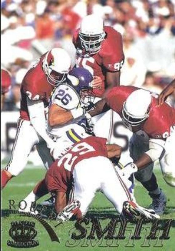 The Robert Smith 1996 Pacific Gridiron #71 Gold card is 1 of 5 Robert Smith's card variations in the 1996 Pacific Gridiron set being tracked by Sports Card Investor, including Base, Copper, Platinum, and Red.