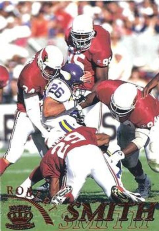 The Robert Smith 1996 Pacific Gridiron #71 Red card is 1 of 5 Robert Smith's card variations in the 1996 Pacific Gridiron set being tracked by Sports Card Investor, including Base, Copper, Gold, and Platinum.