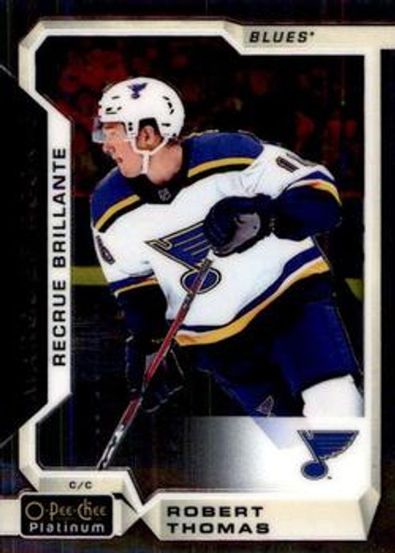 The Robert Thomas 2018 O-Pee-Chee Platinum #194 Base Rookie card is 1 of 28 Robert Thomas' card variations in the 2018 O-Pee-Chee Platinum set being tracked by Sports Card Investor, including Rainbow, Violet Pixels, Red Prism /199, Arctic Freeze /79, and Seismic Gold /50.