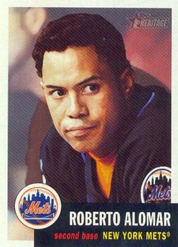 The Roberto Alomar 2002 Topps Heritage #431 Base card is 1 of 2 Roberto Alomar's card variations in the 2002 Topps Heritage set being tracked by Sports Card Investor, including New Age Performers.