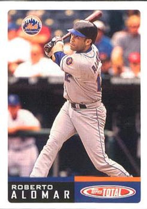 The Roberto Alomar 2002 Topps Total #180 Base card is 1 of 2 Roberto Alomar's card variations in the 2002 Topps Total set being tracked by Sports Card Investor, including Topps Total.