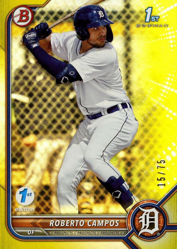 2022 Bowman 1st Edition Yellow Foil Roberto Campos 31/75 Detroit Tigers #BPPF-14