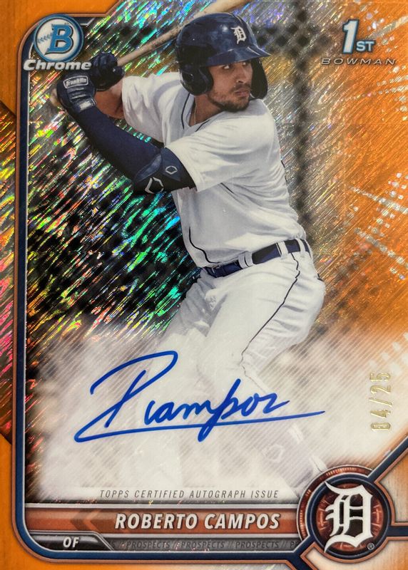 2022 Bowman Chrome Roberto Campos 1st Orange Shimmer On Card Auto /25 CPA-RCS