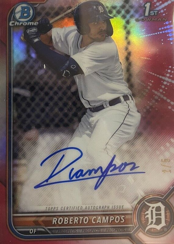 Roberto Campos 2022 Bowman #CPA-RCS Chrome Prospect Auto - Red Refractor /5 (1st) RAW Price Guide