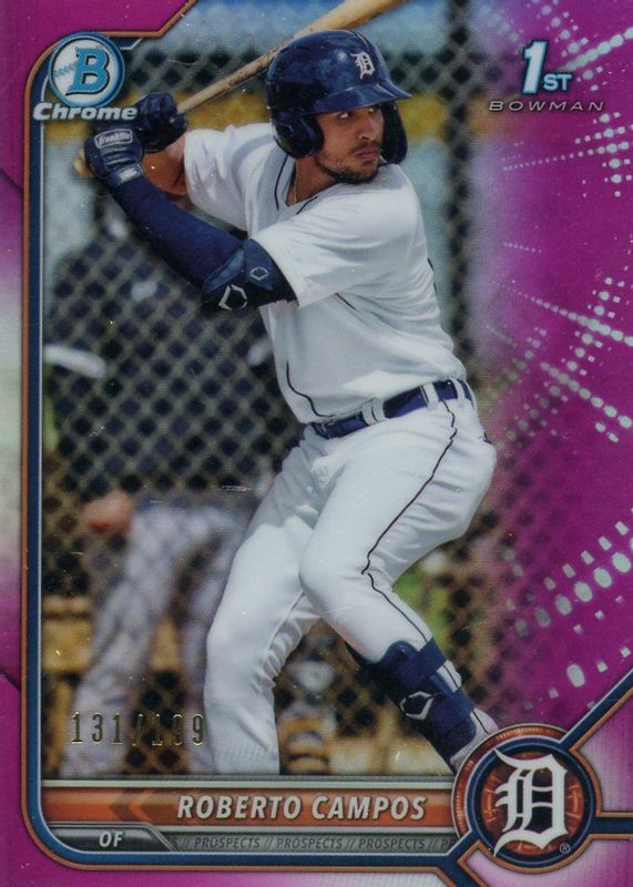 Roberto Campos 2022 Bowman Chrome #BCP-14 Fuchsia Ref. #/199 RC Detroit Tigers