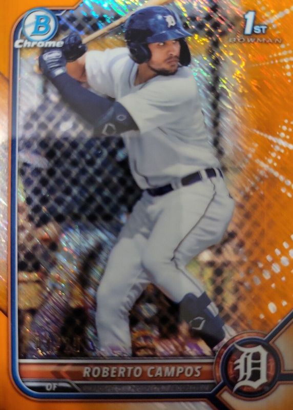 Auctions Ending Soon for Roberto Campos 2022 Bowman #BCP-14 Chrome Prospects - Orange Shimmer Refractor /25 (1st) RAW