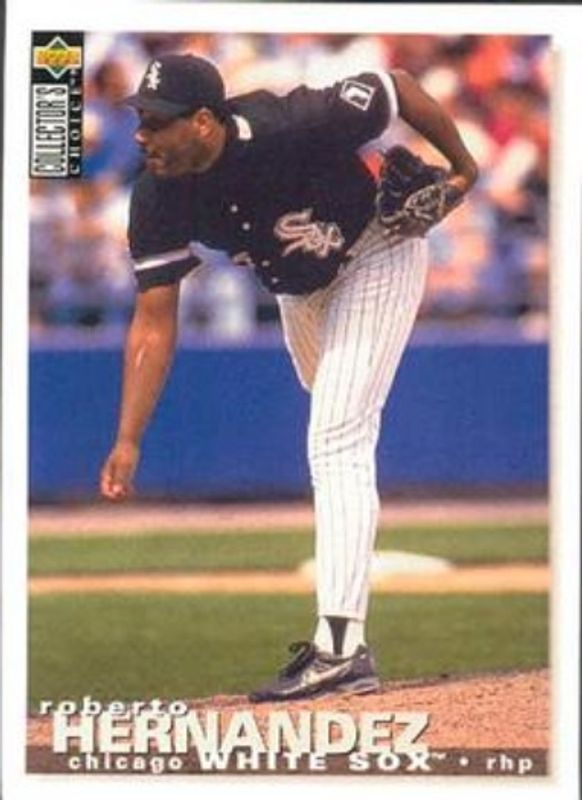 The Roberto Hernandez 1995 Upper Deck Collector's Choice #507 Base card is 1 of 3 Roberto Hernandez's card variations in the 1995 Upper Deck Collector's Choice set being tracked by Sports Card Investor, including Gold Signatures, and Silver Signatures.