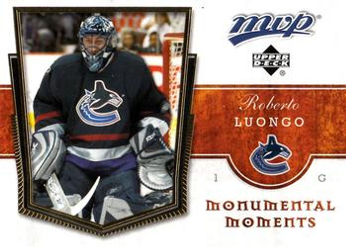 Roberto Luongo 2007 Upper Deck MVP #MM11 Monumental Moments RAW Price Guide