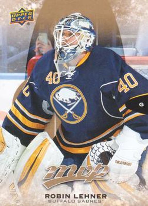 The Robin Lehner 2016 Upper Deck MVP #182 Base card is 1 of 11 Robin Lehner's card variations in the 2016 Upper Deck MVP set being tracked by Sports Card Investor, including Colors & Contours, Green Script, Puzzle Back, Silver Script, and Gold Script /135.