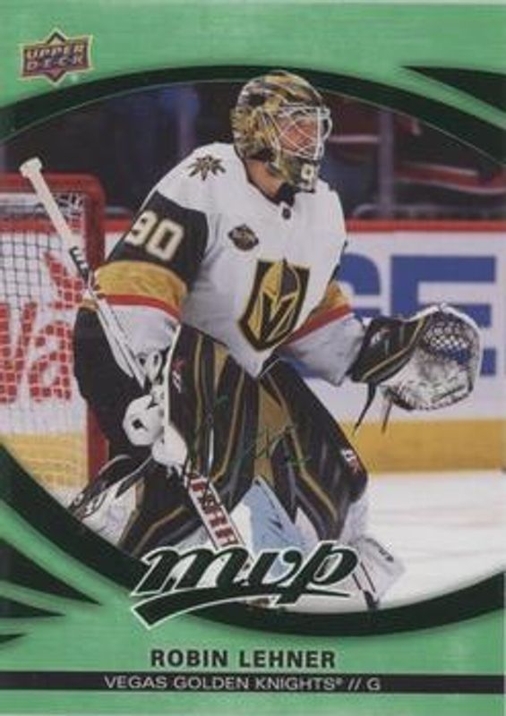 The Robin Lehner 2023 Upper Deck MVP #132 Green Script card is 1 of 11 Robin Lehner's card variations in the 2023 Upper Deck MVP set being tracked by Sports Card Investor, including Base, Gold Script, Ice Battles, Silver Script, and Super Script /25.