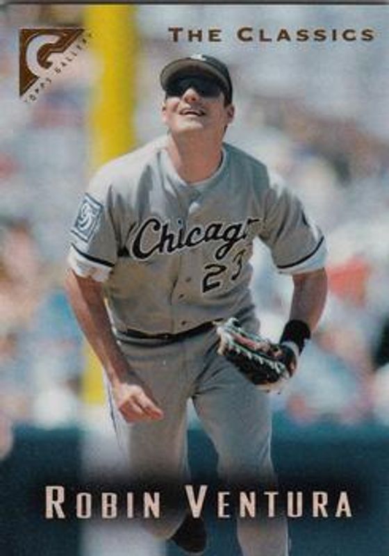 The Robin Ventura 1996 Topps Gallery #73 Base card is 1 of 2 Robin Ventura's card variations in the 1996 Topps Gallery set being tracked by Sports Card Investor, including Player's Private Issue /999.