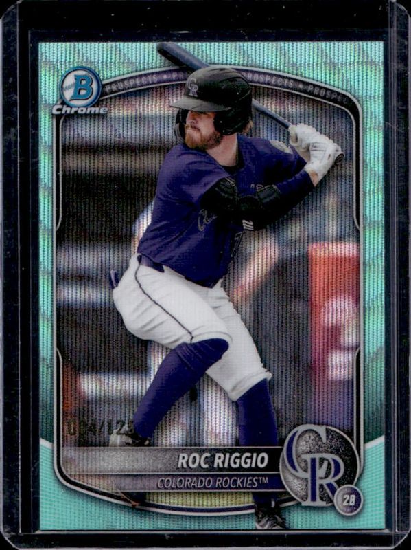 The Roc Riggio 2025 Bowman Draft #BDC-19 Chrome - Aqua Wave Refractor /125 card is 1 of 54 Roc Riggio's card variations in the 2025 Bowman Draft set being tracked by Sports Card Investor, including Base, Chrome, Chrome - Lazer Refractor, Chrome - Refractor, and Chrome - Sky Blue Refractor.