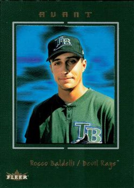 The Rocco Baldelli 2003 Fleer Avant #77 Base /799 Rookie card is 1 of 9 Rocco Baldelli's card variations in the 2003 Fleer Avant set being tracked by Sports Card Investor, including Black & White /199, On Display /399, Autographs - Blue /300, On Display - Game Used /250, and Autograph - Copper /150.