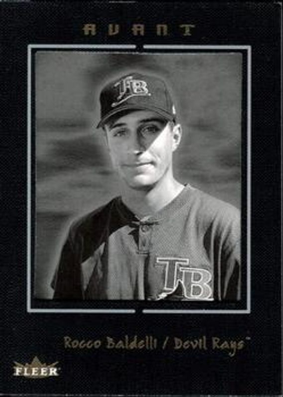 The Rocco Baldelli 2003 Fleer Avant #77 Black & White /199 Rookie card is 1 of 9 Rocco Baldelli's card variations in the 2003 Fleer Avant set being tracked by Sports Card Investor, including Base /799, On Display /399, Autographs - Blue /300, On Display - Game Used /250, and Autograph - Copper /150.