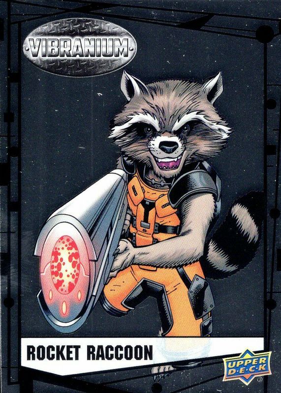 This card is 1 of 6 Rocket Raccoon's card variations in the 2015 Upper Deck Marvel Vibranium set being tracked by Sports Card Investor, including Raw Vibranium, Molten Vibranium /299, Refined Vibranium /99, Radiance Vibranium /50, and Vibranium Bar /5.