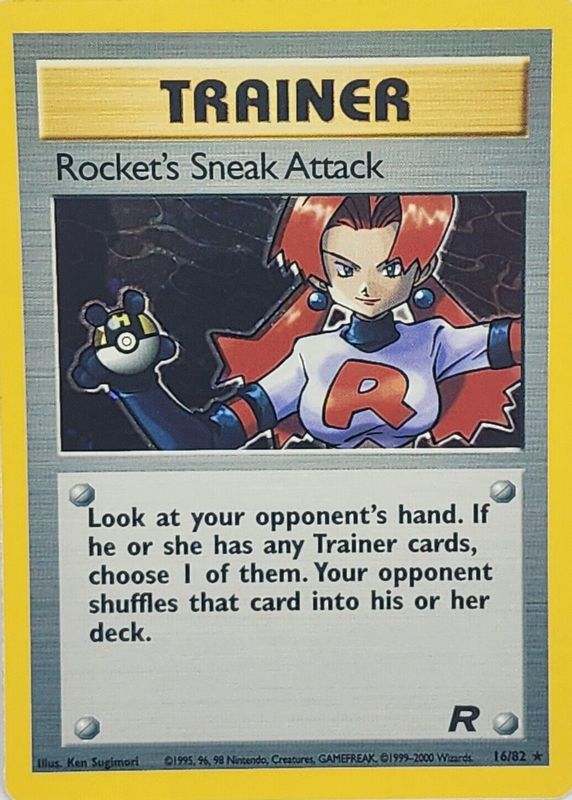 The Rocket's Sneak Attack 2000 Team Rocket #16/82 Unlimited Holo card in Raw TCG (Near Mint) condition has moved up $3.59 (+18.0%) in the last 30 days and was last sold for $23.59 .