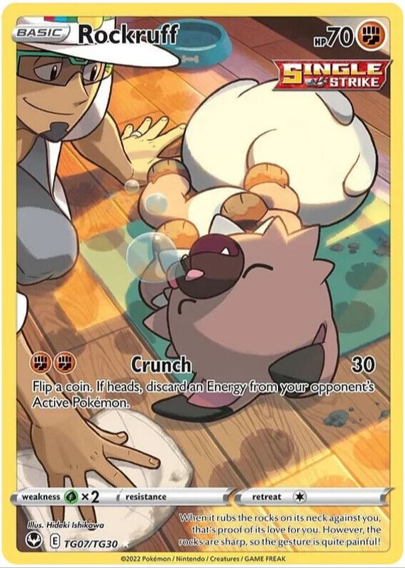 The Rockruff 2022 Sword & Shield: Silver Tempest #TG07/TG30 Trainer Gallery card in Raw TCG (Near Mint) condition has moved up $0.21 (+7.0%) in the last 30 days and was last sold for $3.20 .