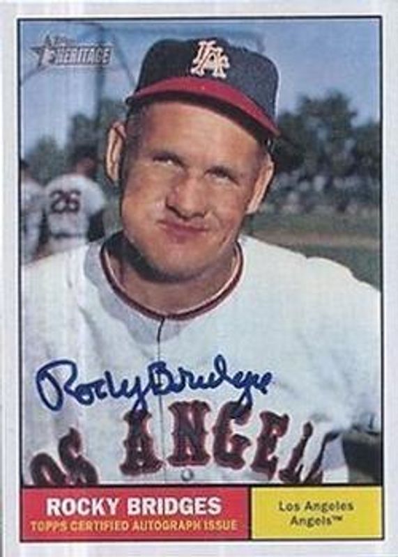The Rocky Bridges 2010 Topps Heritage #ROARB Real One Autographs card is 1 of 4 Rocky Bridges' card variations in the 2010 Topps Heritage set being tracked by Sports Card Investor, including #ROA-RB Real One Autographs, #ROA-RB Real One Autographs - Red Ink /61, and #ROARB2 Real One Autographs - Red Ink /61.